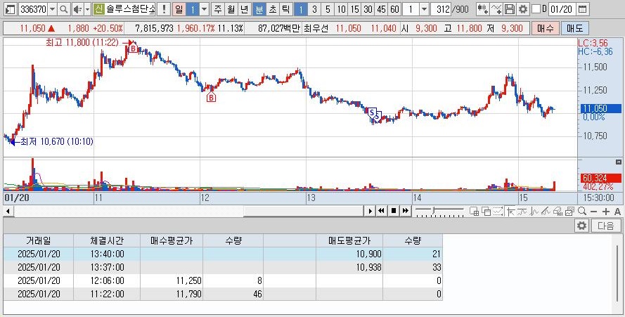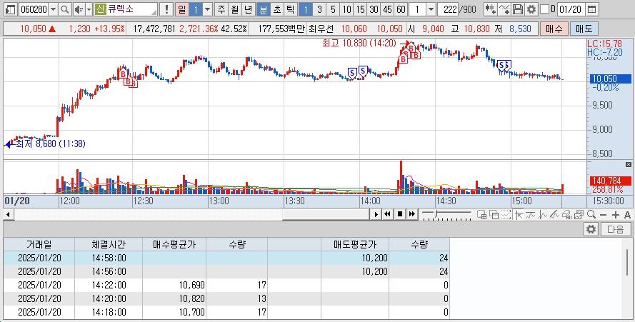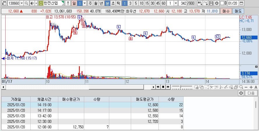 장 초반 급등할때 못 따라가고 다시 돌파할 때 진입해서 수익 실현 후 저가매수 한다고 들어갔으나 손절로 마무리하여 너무 안 풀리는 종목이었다.