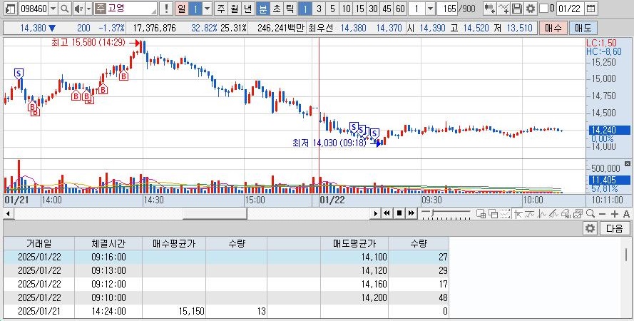 고영의 힘이 빠졌는지 장초반부터 줄줄 흘러내려 손절하고 말았다.