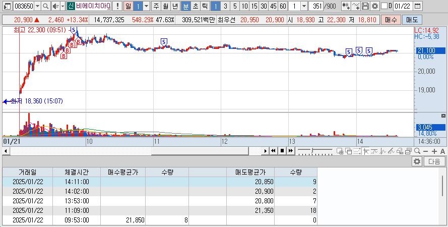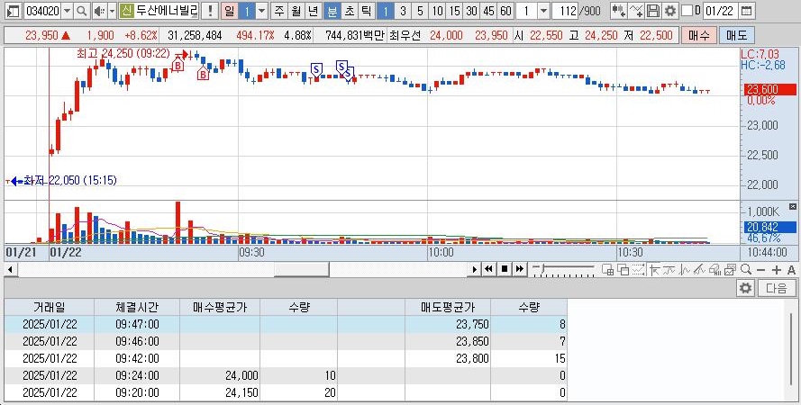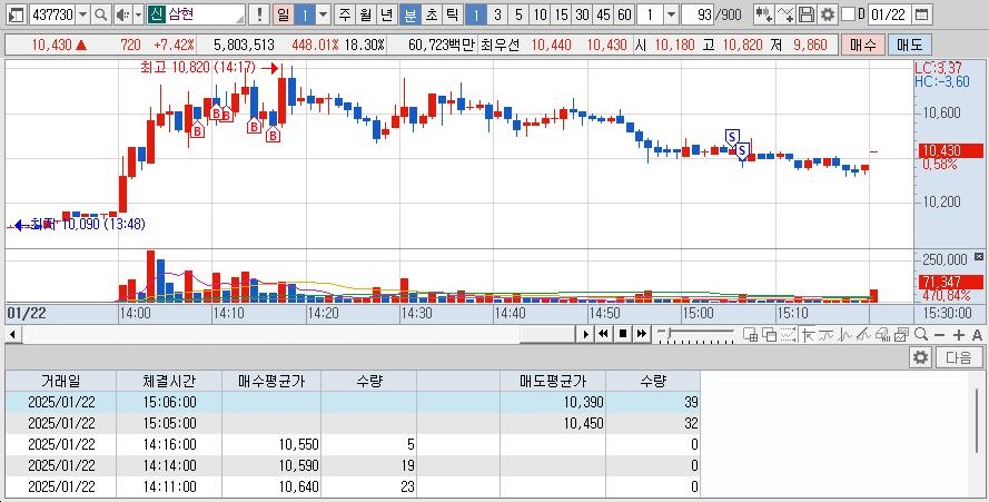 9:20에 빠르게 주도주를 선점했다 생각했는데 거래대금 터지고 테마주임에도 못 가는 모습에 손절하였다.