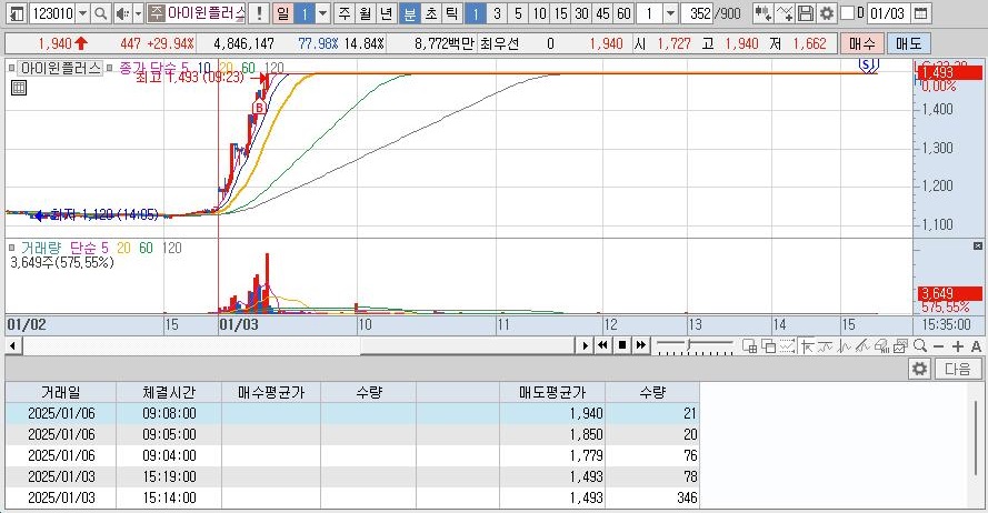 아이원플러스도 상한가 가능성을 보고 진입하였고 장 막판에 정리하고 일부 수량만 오버나잇하였다.