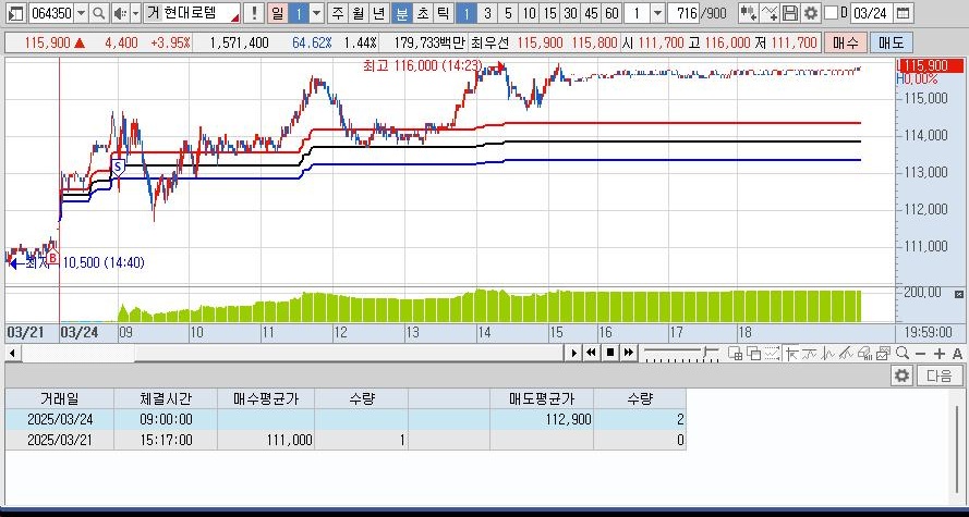 상따를 했으나 여러번 풀리는 모습에서 상한가 익절하고 추가 매수 후 장막판까지 상한가를 기대했으나 종베로 넘어 감
